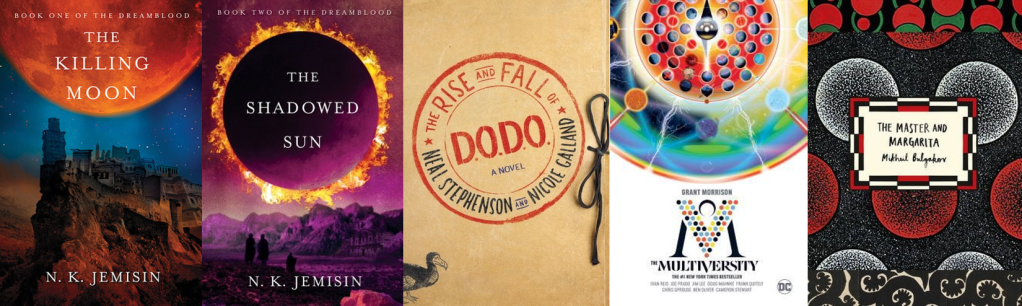 Broken Earth trilogy, # 1-3: The Fifth Season, The Obelisk Gate, and The Stone Sky – NK Jemisin. There are four seasons in every year, we all know this. But now and again a fifth season comes. It may last for weeks or decades, and the world will be changed by it. We begin in The Fifth Season as just such a catastrophe unfolds, and follow three women at different phases of life as they navigate a changing world, a world that has literally ripped open around them. In The Obelisk Gate, a woman with the potential to change the world again must decide whether accepting this power is worth the loss of her family and her identity, and we begin to learn the origins of the cycle of calamity. Finally, with The Stone Sky, a decision is made about who has the right to wield world-altering powers, and about whether what is broken always deserves to be fixed. I cannot praise this series highly enough – the scope and scale of the stories told here are phenomenal. Jemisin‘s writing is so evocative and vivid. I have clear visual memories of certain key scenes, and I remember squirming in my seat during passages where I felt a character’s discomfort. Some of the strongest fiction I’ve read in a long time.