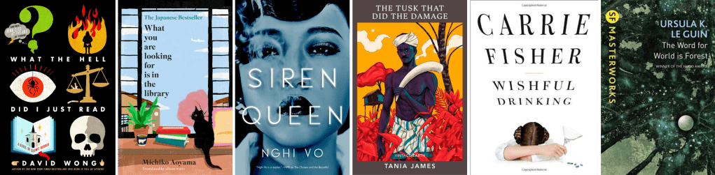 Siren Queen – Nghi Vo. A nightmarish retelling of the Golden Age of Hollywood, when studios ruled over the whole lives of their staff and stars. Predatory creeps who reign as producers and casting agents are re-imagined as literal demons ensnaring beautiful young souls. The young Chinese-American actress at the centre of the story tries to kick back against a racist system and ends up fighting epic occult forces. This book is cool, glamorous, sleazy.